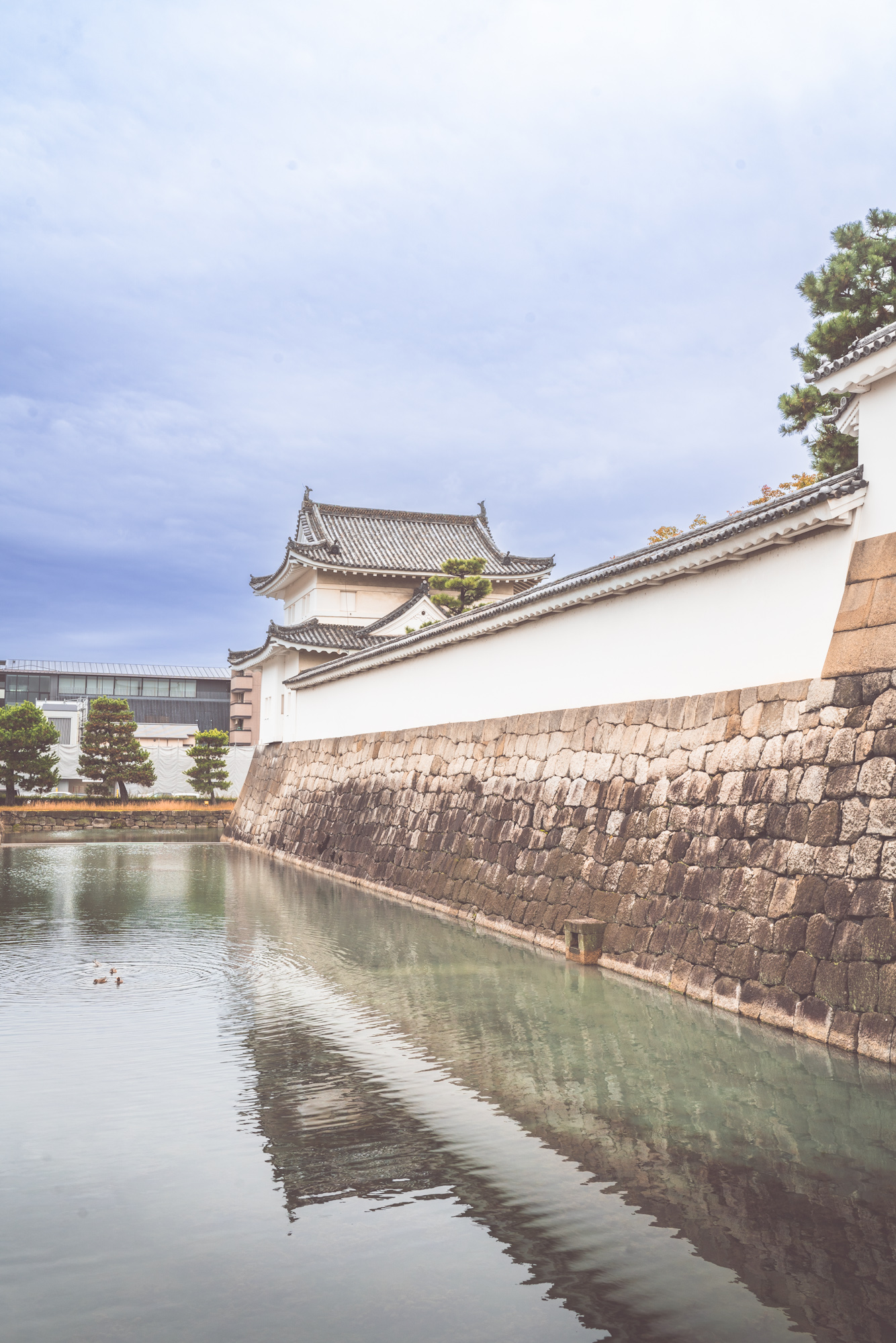 In Kyoto, there are two major imperial places : Nijō castle and the imperial palace. Both are places where the emperors and shoguns used to have official meetings with their daimyos (lords). Nijo isn’t a castle such as Himeji, Okayama or Osaka, the fortified citadel lost its main five stories tower after tanking a lightning strike and being burnt to the ground. Nowadays, only the villa is available to roam in : a gigantic wooden facility with beautiful rooms of different size. All of them decorated with minimalistic Japanese paintings, inspired by Chinese prints.